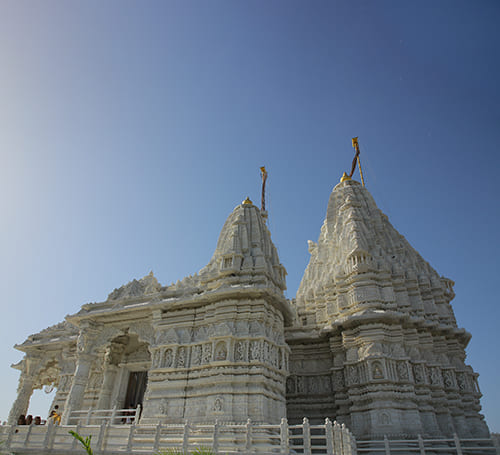 The Adani Shantigram Jain Derasar is a spiritual masterpiece constructed entirely from world-famous Makrana White Marble, showcasing the grandeur of ancient Jain temple architecture. Dedicated to Shri Rishabhdev, the 1st Tirthankara, the temple blends traditional design with unparalleled craftsmanship.