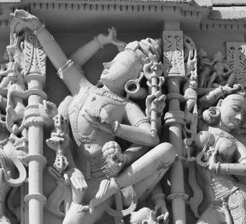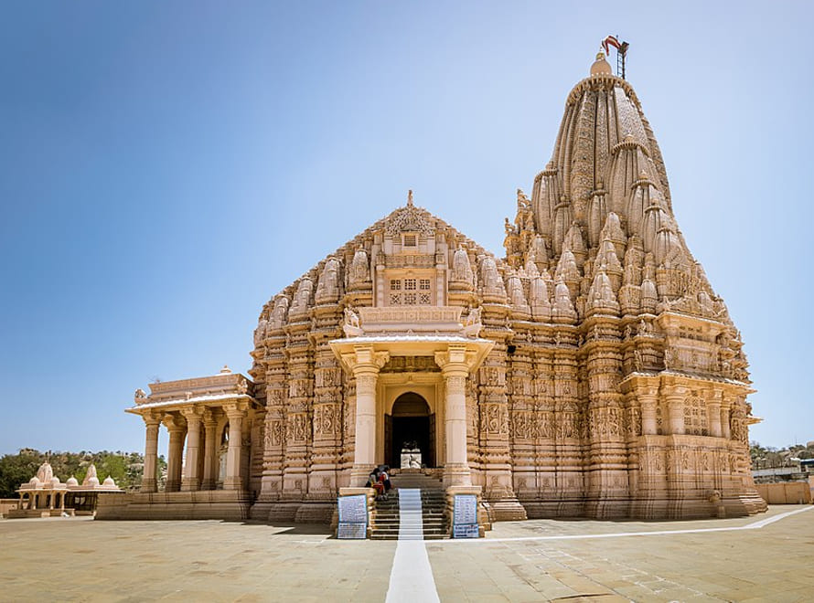 The temple showcases intricate carvings, detailed sculptures, and grand pillars, reflecting the zenith of Jain craftsmanship. It combines elements of spiritual design and worldly celebration, with the Mulnayak idol symbolizing simplicity and enlightenment, while the external decor celebrates life’s artistic splendor